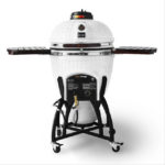 There’s also a hybrid Kamado model, available at Williams-Sonoma, that takes either charcoal or gas. Its white exterior makes it look a little like R2D2.