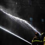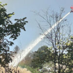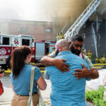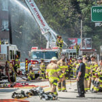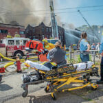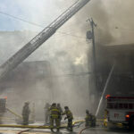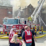 “I think we have to be more concerned with water damage,” Stock replied as at least four fire hoses shot streams of water into the gutted building.