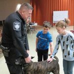 Third-grade students at O’Hara Elementary School got a chance to meet Fox Chapel K-9 Officer Falco and his handler, Fox Chapel Police Officer Rob Katich, on Feb. 1. The visit helped illustrate a reading lesson about training, duties, and partnerships between police dogs and their officers. Falco is a 10 1/2-year-old Dutch shepherd. The visits help develop a good relationship between kids and the police department, “so that they know we’re nothing to be fearful of,” said Katich. “It builds a good, strong bond between police and students at that age.”
