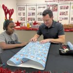 “I got some really good stuff,” said Jordan, 12, while he and his mentor, Casey Carr, of Hampton, were working on wrapping. Jordan said he got gifts for his family and, yes, himself.
