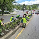 Nearly 20 volunteers and three borough public works laborers spent the morning of May 14 planting about 4,000 flowers in the islands of the major roadway.