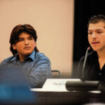 Sam Rayburn High Schoolers Steve Silva and Salvador Gonzalez speak about hate and violence in grade schools during a panel discussion @EradicateHate_.