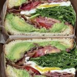 Avocado toasts include the Bang Bang ($15) served between two toasted slices of Mancini’s bread.