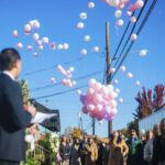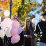 About 80 people gathered at the funeral home Tuesday morning, releasing dozens of pink and white biodegradable balloons into the clear blue sky before the funeral procession pulled out, weaving through Plum to the cemetery about 15 minutes away.