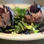 Among the appetizer options are figs stuffed with dry bleu cheese, wrapped in prosciutto and topped with a balsamic reduction drizzle.