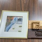 Gray’s maker class students spent about four of their 85-minute class periods creating nine sets of four wooden coasters — gluing the two tones of wood together, cutting the coasters to size, using a router machine to create edges, engraving each piece with a laser cutter and covering them in a mineral oil coat.