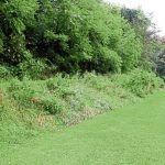 The Boy Scouts, with a lot of help from volunteers, removed brush from the bleachers and a wooden press box over the first two Saturdays of September. They also removed vegetation from around a plaque that honors his grandfather. Rotted wooden bleachers laying behind a storage shed were removed, as well as pipe that was used for fencing.