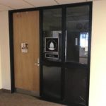 Visitors and staff were restricted to entering the building through the Main Street front door in Courthouse Square. Visitors were met with a sign telling them that, if sick, entrance would be denied, and those allowed in were required to use hand sanitizer.