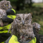 A municipal worker in Montenegro holds owlets rescued from a fallen tree after a powerful storm in Podgorica. A herd of deer cross a road in a bucolic scene near Frankfurt, Germany.