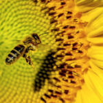 An insect hovers near flowers decorating the area around the holy remains of the patron saint of the Romanian capital Bucharest.