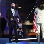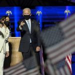Harris introduced Biden at their evening victory celebration as “a president for all Americans” who would look to bridge a nation riven with partisanship and she nodded to the historic nature of her ascension to the vice presidency.