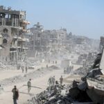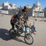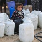 A Palestinian child among water containers, amid a ceasefire between Israel and Hamas, in Khan Younis, southern Gaza Strip, on Thursday.