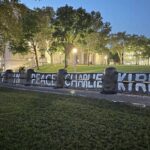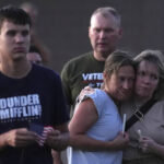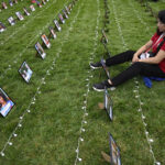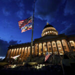 Thomas Hess and friend Nolan Jenson stand in front of the Capitol with flags after members of the community gathered at the Capitol in Salt Lake City to honor Charlie Kirk after he was shot at an event at Utah Valley University and later died at a local hospital, on Wednesday.