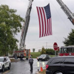 The procession wound from the funeral home down Cape Horn Road to Living Word under a gray sky. People lined the route, standing in the rain, waving flags. At the church, the detectives’ flag-draped caskets were carried to the front of the sanctuary. Soft music played as the 1,500-seat auditorium filled with family, friends and law enforcement from all over the state and region. Gov. Josh Shapiro attended.