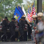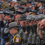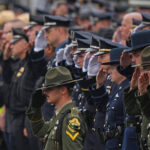 Outside, an honor guard fired a rifle salute and bagpipers played “Amazing Grace.” A bugler played “Taps.” Police officers folded the flags that had been draped over the caskets and presented them to the families of Becker, Baker and Emenheiser.
