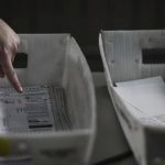 A member of the Return Board works to process some of the 6,800 ballots that were damaged or had some other issue in Allegheny County on Friday, Nov. 6, 2020. Approximately 29,000 other ballots that were affected by a printing mishap last month will be beging to be processed later today.