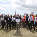 McKee and the state’s entire congressional delegation gathered at a beach area in North Kingstown, near the project’s logistics and operations hub.