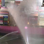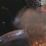 LOS ANGELES — A fire that broke out aboard a Los Angeles container ship on Friday continued to burn overnight, prompting a shelter in place order for surrounding communities over concerns about hazardous materials within the ship’s cargo.