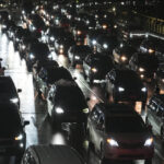Roads leading to O’Hare were packed Sunday with slow-moving vehicles even after the roads had been cleared of snow. Inside, delayed travelers crowded into gate seating areas, restaurants and sports bars to pass the time. Others grabbed spots on the floors of the terminals, snacking, knitting or scrolling their phones.