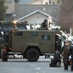 The officers, carrying rifles and using an armored personnel carrier, massed outside the house. Area residents were told to shelter in place.