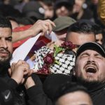 At the funeral of the 22-year-old, crowds of Palestinians waved the flags of both Fatah, the party that controls the Palestinian Authority, and militant Hamas, which rules Gaza. In the streets of the town called al-Ram, masked Palestinians threw stones and set off fireworks at Israeli police, who responded with tear gas.