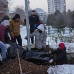 A large makeshift graveyard was under construction in Antakya’s outskirts on Saturday. Backhoes and bulldozers dug pits in the field as trucks and ambulances loaded with black body bags arrived continuously. Soldiers directing traffic on the busy adjacent road warned motorists not to take photos.