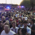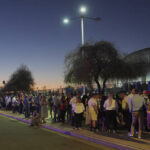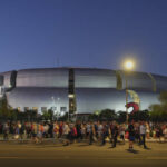 People began lining up before dawn to secure a spot inside State Farm Stadium west of Phoenix, where Kirk’s Turning Point organization is based. Security was tight and speakers delivered their tributes from behind bullet-proof glass.
