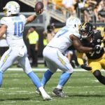 Heinecke’s first full series in place of Herbert ended when he was sacked for an 8-yard loss by Watt, forcing another punt. Fields then applied the dagger with his 55-yard strike to Austin.