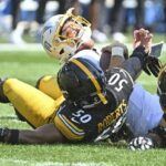 Backup Taylor Heinecke was sacked three times in the fourth. Nick Herbig, replacing an injured Alex Highsmith after halftime, had two sacks. Watt, Roberts and Cameron Heyward had the others.
