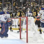 After Karlsson failed to keep a puck in the offensive zone at the right point, Draisaitl pushed it up ice and generated a three-on-one rush with Podkolzin and Savoie against Wotherspoon. From the Penguins’ left circle, Draisaitl forced a backdoor pass intended for Savoie, which Wotherspoon broke up with his right leg. The ensuing rebound trickled loose in the slot where Podkolzin punched it in with a forehand shot past Skinner’s right skate. Draisaitl and defenseman Matthias Ekholm extracted assists.
