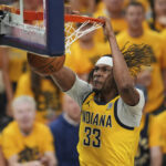 Pascal Siakam had 16 points and 13 rebounds for Indiana, andTyrese Haliburton — playing through a strained calf — scored 14 points for the Pacers, who started slowly and then turned things into a blowout.