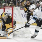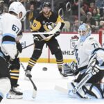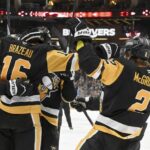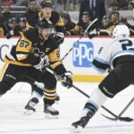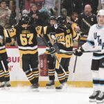 Stationed low in Utah’s slot, Brazeau tipped a wrister by Penguins defenseman Erik Karlsson from above the left circle past Vejmelka’s blocker to tie the contest. Karlsson and Kindel collected assists.