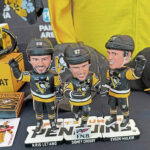 You celebrate it by giving away something people can take home with them, a collector’s item, Ritenour said, while showing the bobblehead series of Crosby, Malkin and Letang. The bobbleheads will be given out at games in December, February and March.
