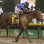 Journalism didn’t have the cleanest of trips in the 19-horse field but rallied to stay in the fight. He found trouble in the first turn, and jockey Umberto Rispoli swung him outside to get him in the clear. Sovereignty and jockey Junior Alvarado followed them.