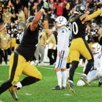 The lead changed hands three times in the second half before Vinatieri’s miss prevented a fourth. Bud Dupree’s strip sack/fumble recovery set up Mason Rudolph’s 7-yard touchdown pass to tight end Vance McDonald with 5:25 left in the third quarter that gave the Steelers their first lead, 20-16.