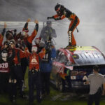 Bryon took advantage of another wreck on the final lap — NASCAR did not drop the caution and let the field race to the finish — and took another, familiar burnout in Daytona International Speedway.